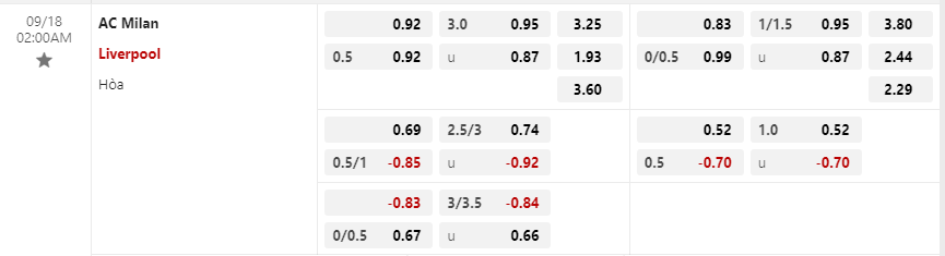 Soi kèo hiệp 1 AC Milan vs Liverpool