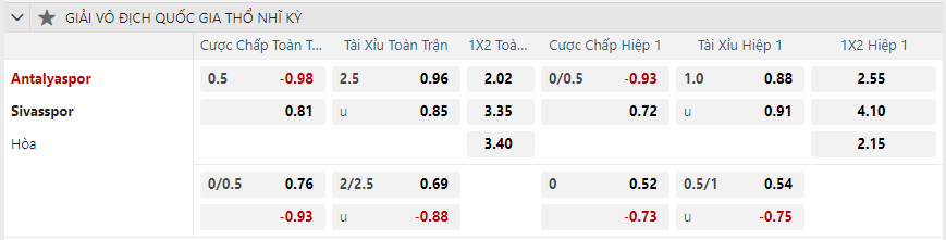 Soi kèo châu Á Antalyaspor vs Sivasspor: 0.98*0.5*0.81