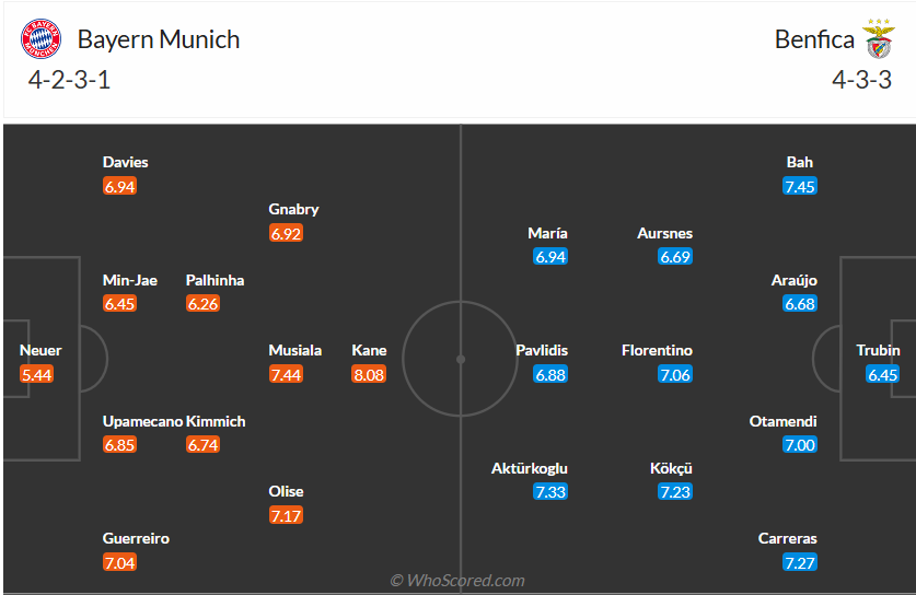 Benfica có 6 điểm sau 3 lượt trận, thành tích không đến nỗi nào của đội bóng Bồ Đào Nha. Đội bóng của HLV Bruno Lage đang chơi tốt tại đấu trường quốc nội và muốn tiếp tục chơi tốt tại Champions League để giành vé vào vòng knock out. Tuy nhiên ở lượt trận thứ tư này các cầu thủ Benfica phải đối mặt với thử thách rất lớn khi làm khách trên sân của Bayern ở lượt trận thứ tư, trước đối thủ đang có phong độ cao và rất quyết tâm giành chiến thắng thì nhiều khả năng đội bóng đến từ Bồ Đào Nha sẽ không thể có điểm ra về.