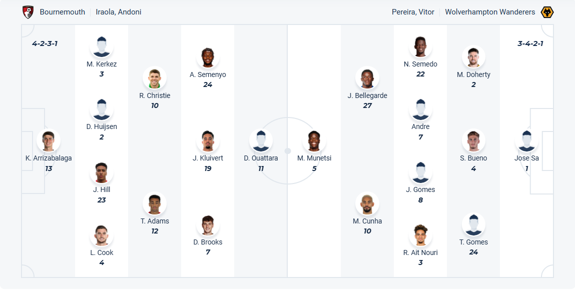 Bournemouth đang không có phong độ tốt thời gian gần đây, họ để thua 3/4 vòng gần nhất tại Premier League nên tụt xuống vị trí thứ 7 trên bảng xếp hạng sẽ gặp nhiều khó khăn hơn trong việc cạnh tranh các tấm vé dự cup Châu Âu. Đội bóng của HLV Iraiola để thua cả 2 trận gần nhất nên rất cần một kết quả tích cực ở vòng 5 FA Cup này, các cầu thủ Bournemouth sẽ vào trận với tinh thần quyết tâm hơn khi gặp lại Wolves, đội họ vừa để thua cách đây ít hôm. Nhiều khả năng với chất lượng đội hình tốt hơn thì Bournemouth sẽ không mắc sai lầm như trận đấu tại Premier League và giành chiến thắng trận này.
