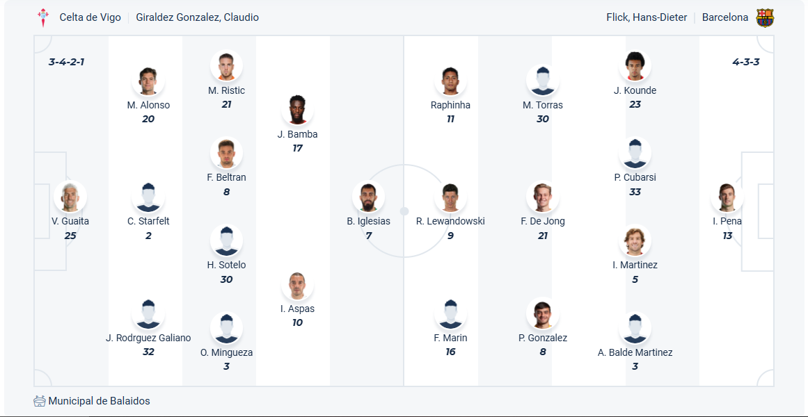 Celta Vigo đang đứng thứ 11 trên bảng xếp hạng, vị trí không hề tồi so với tiềm lực của đội bóng này bởi những mùa trước họ luôn phải vật lộn với cuộc chiến trụ hạng. Đội bóng của HLV Claudio Giráldez cũng đang chơi tốt khi thắng 3/6 vòng gần nhất nên họ rất tự tin vào việc giành một kết quả tích cực ở vòng 14 này. Tuy nhiên đối thủ của họ lại là đội đầu bảng Barcelona nên xem ra cơ hội có điểm không cao. Nhiều khả năng Celta Vigo dù đã chơi đầy cố gắng nhưng vẫn phải chịu thêm một trận thua nữa.