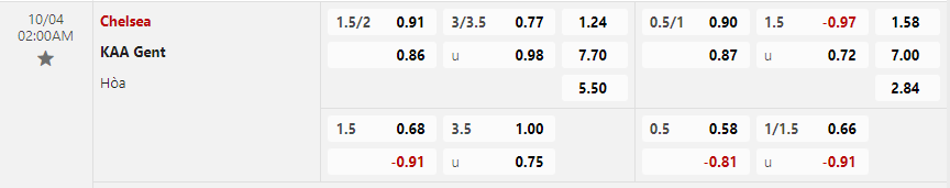 Soi kèo hiệp 1 Chelsea vs KAA Gent