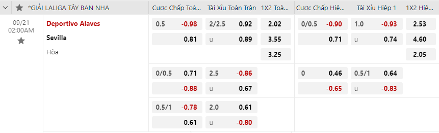 Soi kèo hiệp 1 Deportivo Alaves vs Sevilla