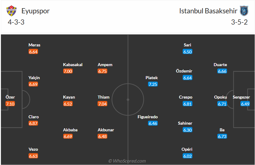 Basaksehir là đội bóng có tiềm lực tốt của Thổ Nhĩ Kỳ, họ đứng thứ tư mùa giải trước. Tuy nhiên mùa giải này đội bóng của HLV Çağdaş Atan đang chơi không hề tốt, họ đứng thứ 10 trên bảng xếp hạng. Việc chỉ thắng 2/6 vòng đấu gần nhất là minh chứng rõ ràng nhất cho sự yếu kém của các cầu thủ Basaksehir và họ cần chơi tốt trong phần còn lại của mùa giải để cải thiện thứ hạng của mình. Đến làm khách trên sân của đội mới lên hạng Eyupspor là cơ hội tốt để Basaksehir giành chiến thắng và nhiều khả năng họ sẽ có 3 điểm ra về.