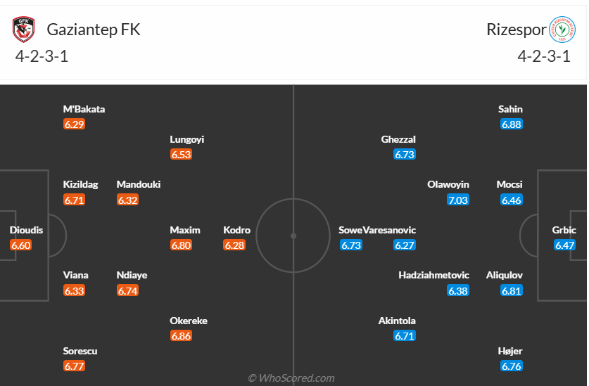 Rizespor đứng thứ 9 mùa giải trước, vị trí chấp nhận được với đội bóng này. Mùa bóng năm nay đội bóng của HLV İlhan Palut chỉ đang đứng thứ 8, vị trí không cho thấy sự tiến bộ so với mùa trước. Tuy nhiên đó là giai đoạn đầu mùa còn thời gian gần đây đội bóng này đang chơi rất ổn khi thắng 5, thua 1 trong 6 vòng gần nhất và nhờ đó họ mới có được vị trí như hiện tại. Các cầu thủ Rizespor muốn tiếp tục giành chiến thắng ở vòng đấu thứ 14 này. Đến làm khách trên sân của đội bóng đang chơi bất ổn Gaziantep không phải điều gì đó quá khó khăn và nhiều khả năng Rizespor sẽ có 3 điểm ra về.