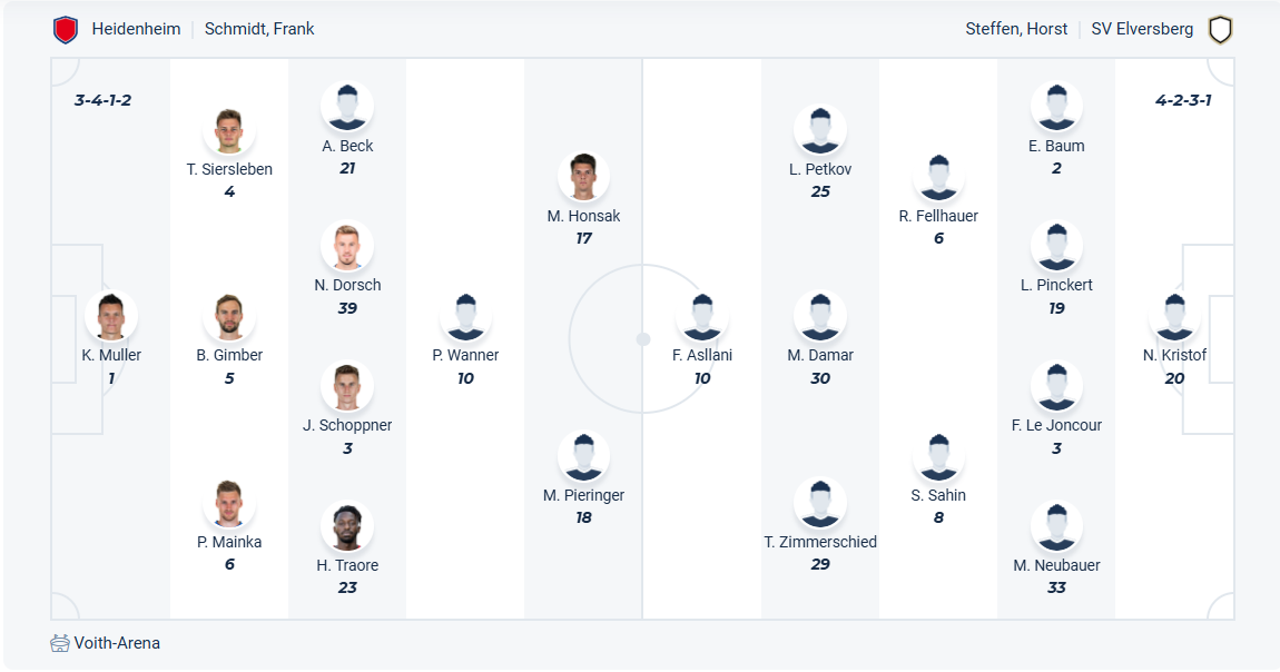 Heidenheim đã có 2 mùa chơi ở Bundesliga, mùa trước họ chơi rất tốt khi đứng thứ 8 nhưng mùa này mọi thứ không còn như đội bóng này mong muốn. Việc kết thúc ở vị trí thứ 16 khiến nguy cơ xuống hạng của thầy trò HLV Frank Schmidt rất cao, dù chưa chắc chắn xuống hạng nhưng Heidenheim cần vượt qua trận play off với Elversberg ở Bundesliga 2 thì mới được đá ở Bundesliga mùa tới. Họ cần thắng trận lượt đi trên sân nhà, dù phong độ không tốt nhưng khả năng các cầu thủ Heidenheim vẫn biết cách để có được điều mình cần.