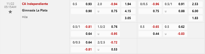 Tỷ lệ kèo Independiente vs Gimnasia y Esgrima