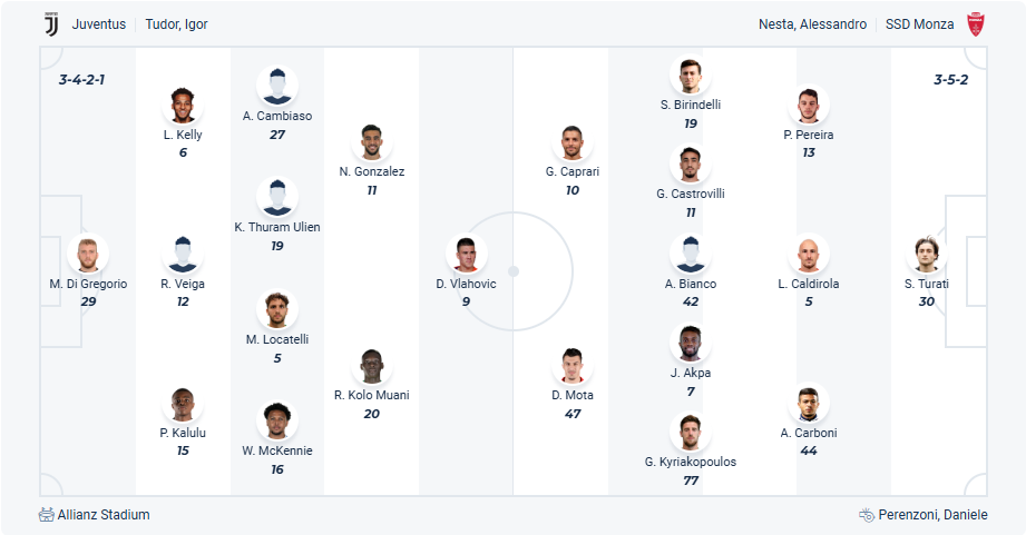 Monza mùa trước đứng thứ 12, vị trí rất ổn so với tiềm lực của đội bóng này. Tuy nhiên mùa bóng năm nay mọi thứ đang diễn ra vô cùng tệ hại với thầy trò HLV Alessandro Nesta, họ đứng cuối bảng với chỉ 15 điểm ở thời điểm hiện tại và cơ hội trụ hạng vô cùng thấp. Đội bóng này thua cả 4 trận gần đây của mình nên khi đến làm khách trên sân của một Juventus đang rất cần điểm thì sẽ không có gì ngạc nhiên nếu các cầu thủ Monza tiếp tục có thêm một trận thua nữa.