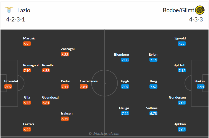 Bodo Glimt là đội bóng mới nổi thời gian gần đây của Na Uy, họ vô địch quốc gia 4 mùa giải gần đây dù trước đó chưa có thành tích gì. Rõ ràng đội bóng của HLV Kjetil Knutsen đang là đội bóng mạnh nhất của Na Uy thời điểm này nhưng khi ra trời Âu thì vẫn còn thua kém rất nhiều nên việc xuống đá ở Europa League là vừa sức với họ. Thực tế đã chứng mình điều đó khi Bodo Glimt đã vào đến tứ kết và có cơ hội rất lớn vào bán kết sau khi thắng Lazio 2-0 trong trận lượt đi. Tuy nhiên mọi thứ chưa kết thúc và các cầu thủ Bodo Glimt cần chơi tập trung trong trận lượt về này, nhiều khả năng đội bóng đến từ Na Uy sẽ chơi đủ tốt để chỉ phải nhận trận thua với cách biệt tối thiểu.