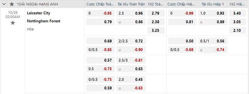 Soi kèo hiệp 1 Leicester City vs Nottingham Forest