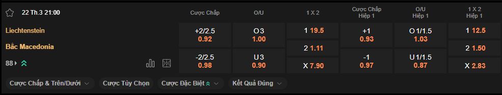 Soi kèo tài xỉu Liechtenstein vs Macedonia: 1.06*2/2.5*0.88