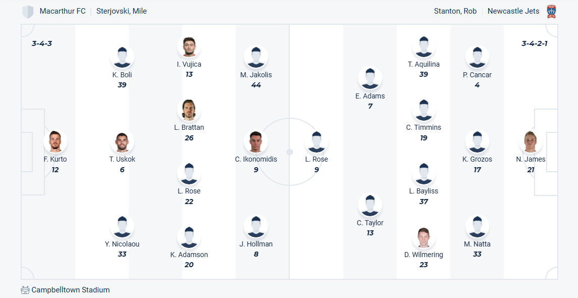Macarthur đang đứng thứ 8 trên bảng xếp hạng, so với vị trí thứ 5 mùa giải trước thì rõ ràng đội bóng của HLV Mile Sterjovski đang không chơi tốt. Chuỗi 5 trận liên tiếp không thắng trong đó có tới 4 trận thua là nguyên nhân khiến đội bóng này không có được vị trí tốt, họ mới ngắt được chuỗi trận không tốt đó bằng chiến thắng ở vòng đấu trước và muốn tiếp tục có được điều tương tự ở vòng đấu này để cải thiện thứ hạng. Newcastle Jets không phải đối thủ dễ chơi, tuy nhiên tinh thần tốt cộng lợi thế sân nhà sẽ là điều giúp Macarthur có được điều mình cần.