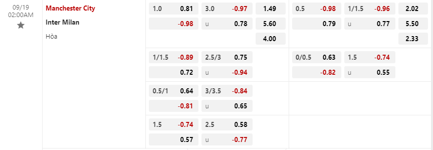Soi kèo hiệp 1 Manchester City vs Inter Milan