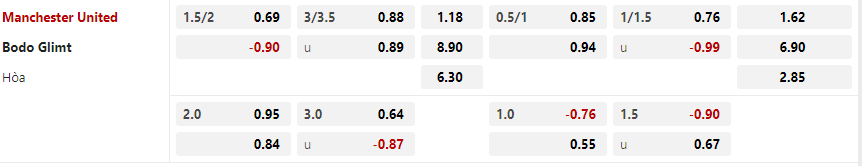 Soi kèo châu Á Manchester United vs Bodo Glimt: 0.90*1.75*0.69