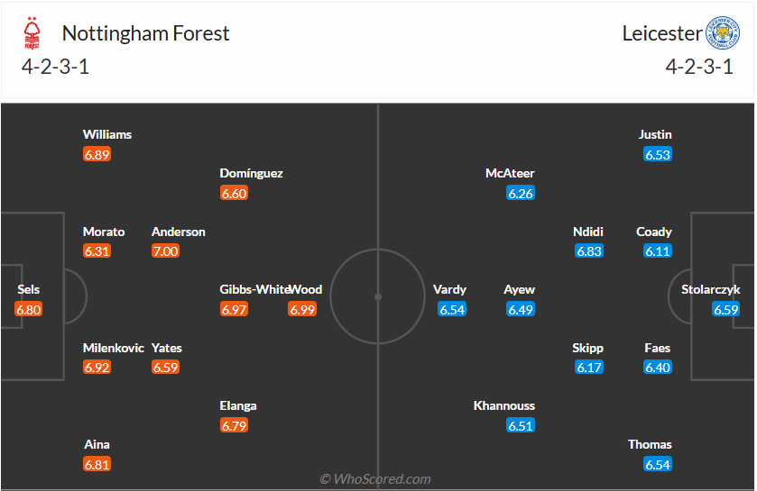 Nottingham sau khoảng thời gian khá dài chơi tốt để giữ vị trí trong top 3 thì thời gian gần đây đội bóng này không còn giữ được thành tích đó nữa. Việc chỉ thắng 2/6 vòng gần nhất và có đến 3 trận thua khiến đội bóng của HLV Nuno Santo tụt xuống thứ 6 trên bảng xếp hạng. Đây là vị trí không được dự Champions League nên các cầu thủ Nottingham cần thắng cả 3 trận còn lại để nuôi hy vọng bám đuổi các đội xếp trên. Tuy nhiên với phong độ tệ hại thời gian qua thì xem ra rất khó để họ có 3 điểm ở vòng 36 này, kể cả đối thủ là Leicester đã xuống hạng.
