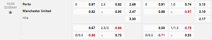 Tỷ lệ kèo FC Porto vs Manchester United