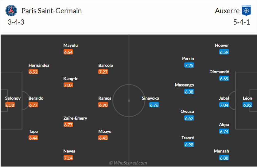 Dự đoán tỉ số trận đấu: PSG 4 – 1 Auxerre (Chọn PSG và Tài trận).