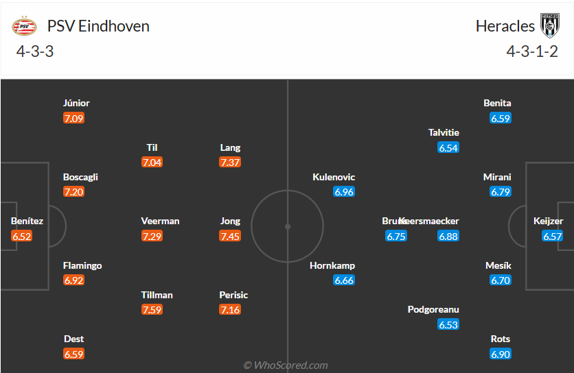 PSV toàn thắng những vòng gần đây, nhờ việc đội đầu bảng Ajax mất điểm 3 trận liên tiếp thì hiện tại đội bóng của HLV Peter Bosz chỉ còn kèm đối thủ cạnh tranh 1 điểm. Cơ hội giành chức vô địch tưởng chừng mờ mịt bỗng trở nên rất sáng và nếu thắng cả 2 trận còn lại thì PSV hoàn toàn có thể hy vọng vào viêc bảo vệ ngôi vương. Chính vì vậy khi tiếp đón Heracles trên sân nhà thì 3 điểm là điều PSV buôc phải có, trước đối thủ yếu hơn nhiều thì khả năng đội bóng chủ nhà sẽ đạt được mục đích.
