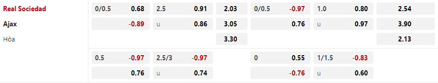 Soi kèo hiệp 1 Real Sociedad vs Ajax: 0.76*0*0.55