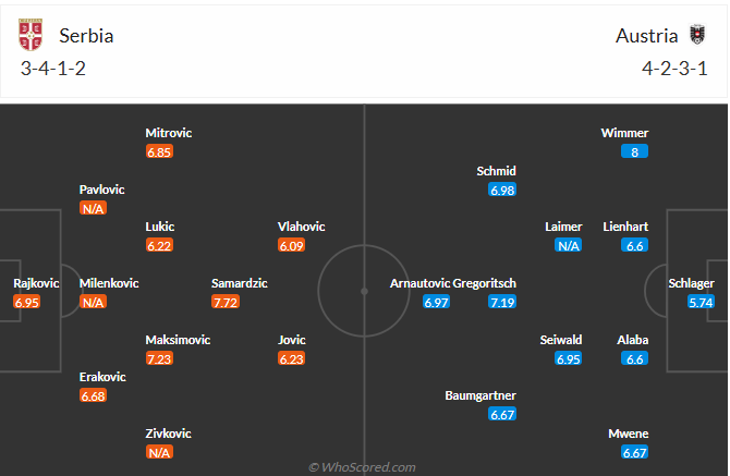 Cả Serbia và Áo đều chỉ có được những kết quả hòa. Khi so sánh thành tích đối đầu thì Serbia nhỉnh hơn khi thắng 3, hòa 1 và chỉ thua 2 trong 6 lần gần nhất gặp Áo. Những con số thống kê này cộng với lợi thế được đá sân nhà nhiều khả năng sẽ giúp Serbia chơi tốt và giành chiến thắng.