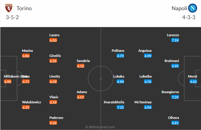 Lịch sử đối đầu đang nghiêng hoàn toàn về phía Napoli khi họ thắng 4, hòa 1 và thua 1 trước Torino. Xét về phong độ hiện tại của cả hai đội, vị trí trên bảng xếp hạng và kỷ lục đối đầu, Napoli bước vào trận đấu này với tư cách là ứng cử viên sáng giá. Chất lượng vượt trội của họ, cả trong tấn công lẫn phòng ngự, cùng với thành tích tốt trên sân khách, mang lại cho họ lợi thế đáng kể.