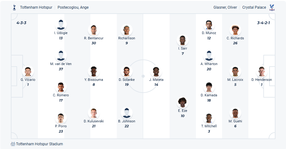 Tottenham không thắng 4 vòng gần nhất tại Premier League, một phần lớn do họ dồn tất cả vào mặt trận Europa League, nơi họ hy vọng có một danh hiệu. Đội bóng của HLV Ange Postecoglu đã tiến rất gần đến điều đó khi đã lọt vào chung kết nên có thể thoải mái hơn khi trở lại Premier League. Chắc chắn các cầu thủ Tottenham không muốn để thua quá nhiều nên họ muốn thắng ở vòng đấu thứ 36 này, trước đối thủ cũng đã hết mục tiêu như Crystal Palace thì nhiều khả năng lợi thế sân nhà là đủ để Tottenham có 3 điểm.