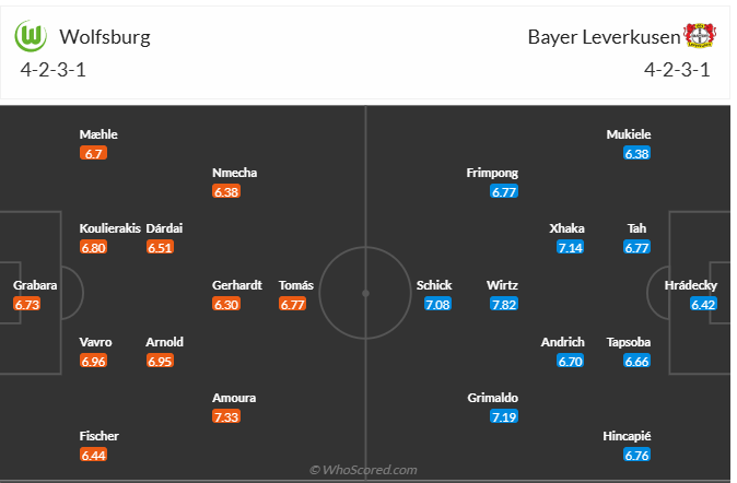 Leverkusen đã chơi tốt hơn thời gian gần đây để leo lên vị trí thứ 2 trên bảng xếp hạng, dù không tốt bằng khi so với mùa giải trước nhưng đây cũng là thành tích rất ổn của thầy trò HLV Xabi Alonso. Cơ hội bảo vệ chức vô địch vẫn còn và để làm điều đó thì các cầu thủ Leverkusen cần thắng các trận đấu của mình. Chính vì vậy khi đến làm khách trên sân của Wolfsburg thì 3 điểm là điều duy nhất mà Leverkusen hướng đến. Nhiều khả năng đội hình mạnh hơn và phong độ cao hơn sẽ giúp họ ra về với 3 điểm trọn vẹn.